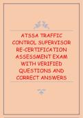 The material is designed to reinforce practical knowledge, enhance decision-making in field operations, and support effective preparation for Module 7 assessm... i x Exam (elaborations) • 3 pages • by Nursefrank • uploaded 2026 Quick View i x Nursing • Nursing ATSSA Traffic Control Supervisor Re-Certification – Professional Certification – 2026 – Assessment Exam with Verified Questions and Correct Answers (0) $14.99 0x sold This document provides a comprehensive assessment exam for ATSSA Traffic Control Supervisor re-certification, including verified questions with correct answers. It covers key topics such as work zone safety, traffic control plans, MUTCD guidelines, incident management, and supervisor responsibilities.