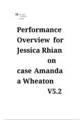 This document covers a detailed performance overview for Jessica Rhian on Case Amanda A using Wheaton version 5.2.2. It outlines case-specific actions, decision-making, outcomes, and adherence to required protocols or competencies. The overview is intended for evaluation, feedback, and performance review purposes within the Wheaton framework.