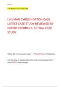 This document covers the latest I-Human case study for Cyrus Horton, including the actual case content reviewed with expert feedback. It focuses on patient assessment, clinical reasoning, diagnostic decisions, management planning, and evaluation aligned with I-Human objectives. The material supports case-based learning, performance improvement, and exam preparation.