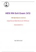 HESI RN Exit Exam (V3) - 160 Questions & Answers (Rated A+) Actual Screen Shots Best 2024 Version