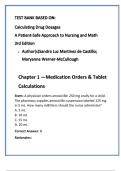 Mastering medication math is essential for safe, accurate nursing practice. This chapter-by-chapter test bank is fully aligned with Calculating Drug Dosages: A Patient-Safe Approach to Nursing and Math, 3rd Edition by Martinez de Castillo & Werner-McCullough. Designed for undergraduate nursing students, NCLEX candidates, and faculty, it provides step-by-step calcu...