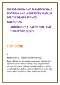 Master microbiology and parasitology with confidence using this comprehensive Nursing Microbiology and Parasitology Test Bank based on Microbiology and Parasitology: A Textbook and Laboratory Manual for the Health Sciences, 2nd Edition by Fe A. Bartolome and Elizabeth P. Quiles—a trusted, foundational resource in health sciences education.