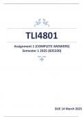 TLI4801 Assignment 1 (COMPLETE ANSWERS) Semester 1 2025 (835330) - DUE 14 March 2025