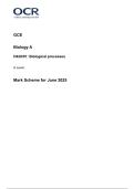 The mark scheme includes examiner guidance, correct answers, and detailed mark allocation used by OCR examiners when assessing candidates in A Level Biology Paper 3. i x Exam (elaborations) • 25 pages • by p71 • uploaded 2026 Quick View i x OCR • Biology OCR A Level Biology A H420/01 June 2025 Mark Scheme – Paper 1 Biological Processes Official Answers (0) $8.49 0x sold This document contains the official mark scheme for the OCR A Level Biology A H420/01 Paper 1: Biological Processes from the June 2025 examination series.