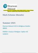 Pearson Edexcel GCE In Religious Studies (8RS0) PAPER 4: Study of Religion Option 4E: Judaism Mark Scheme (Results) Summer 2025