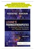 Full Test Bank for Lehne's Pharmacotherapeutics for Advanced Practice Nurses and Physician Assistants 3rd Edition by Laura Rosenthal and Jacqueline Burchum Complete Coverage (Chapters 1-91) Verified Questions & Correct Answers Advanced Pharmacology