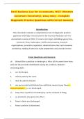 This document contains a comprehensive collection of exam-style questions and detailed answers for the WGU Business Law for Accountants (D216) course. It covers key topics including constitutional law, contracts, agency, business organizations, intellectual property, consumer protection, ethics, securities regulation, and bankruptcy, all aligned with the official...