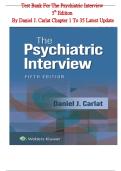 This essential test bank for The Psychiatric Interview, 5th Edition by Daniel J. Carlat features over 800 carefully curated multiple-choice and multiple-response questions covering all 35 chapters, providing a complete review of core principles in psychiatric interviewing, diagnostic assessment, therapeutic communication, and patient management across diverse clinical scenarios—including mood disorders, anxiety, psychosis, substance use, personality disorders, neurocognitive conditions, and sp...
