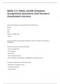 BIOD 171 FINAL EXAM C0mplete Assignment Questions And Answers Guaranteed success