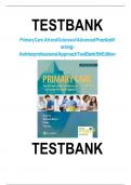 TEST BANK FOR PRIMARY CARE ART AND SCIENCE OF ADVANCED PRACTICE NURSING AN INTERPROFESSIONAL APPROACH 5TH EDITION BY LYNNEM.DUNPHY ISBN 978-0803667181 COMPLETE GUIDE 100% VERIFIED ANSWERS A+ GRADE ASSURED NEWEST !!!!EDITION!!!!