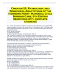 Chapter 22: Physiologic and Behavioral Adaptations of the Newborn Perry: Maternal Child Nursing Care, 6th Edition [Questions with complete answers]