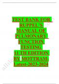 Test bank for ruppel's manual of pulmonary function testing 11th edition by mottram 2023-2024 Latest Update