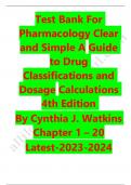 Test bank for pharmacology clear and simple a guide to drug classifications and dosage calculations 4th edition by cynthia j. watkins chapter 1_20 2023-2024 Latest Update