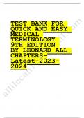 Test bank for quick and easy medical terminology 9th edition by leonard all chapters 2023-2024 Latest Update
