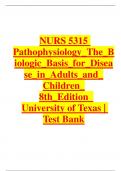 Test bank for pathophysiology the biologic basis for disease in adults and children 8th edition 2023-2024 Latest Update
