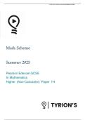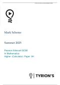 EDEXCEL GCSE MATHEMATICS 3H 2025 PREDICTED MARK SCHEME