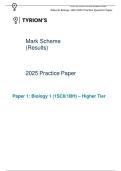 EDEXCEL GCSE COMBINED SCIENCE BIOLOGY 1H 2025 PREDICTED MARK SCHEME 2026 PRACTICE PAPER