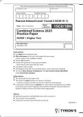 EDEXCEL GCSE COMBINED SCIENCE BIOLOGY 1H 2025 PREDICTED QUESTION PAPER 2026 PRACTICE PAPER