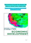 This document contains a comprehensive test bank for Economic Development (13th Edition) by Michael Todaro and Stephen Smith, covering key theories, models, and policy issues in development economics. It includes practice questions with answers designed to help students review core concepts, prepare for exams, and deepen their understanding of economic development topics.
