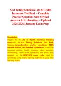 The Xcel Testing Solutions Life Test Bank provides a comprehensive collection of multiple-choice and scenario-based questions with verified answers for students and professionals preparing for life insurance licensing exams. Covers life insurance policies, annuities, underwriting, risk management, legal regulations, and industry practices. Designed for self-study, exam preparation, and classroom review. Fully updated for 2026/2027 to align with current life insurance education standards and lice...