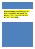 e Egan’s Fundamentals of Respiratory Care 12th Edition Test Bank by Kacmarek provides a complete collection of multiple-choice, scenario-based, and application questions with verified answers for students and professionals in respiratory therapy. Covers airway management, mechanical ventilation, oxygen therapy, diagnostic techniques, patient assessment, and clinical interventions. Designed for self-study, exam preparation, and classroom review. Fully updated for 2026/2027 to align with current...