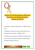 This exam review document for English III covers over 80 fully verified questions and answers focusing on Civil War-era American literature, social reform texts, and poetry. It explores key literary works such as The Narrative of the Life of Frederick Douglass, spirituals like “Swing Low, Sweet Chariot” and “Go Down, Moses,” Emily Dickinson’s reflective poetry, Walt Whitman’s Leaves of Grass, and Sojourner Truth’s impactful speech “Ain’t I A Woman.”