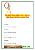 This expert-verified document is a comprehensive midterm formula guide and answer key for Advanced Math students enrolled in MATH 2026 or equivalent Pre-Calculus courses. It features over 50 formula-based questions and answers designed to prepare students for midterm exams. Topics include all essential trigonometric identities (reciprocal, quotient, Pythagorean, cofunction), triangle properties (law of sines, law of cosines, Heron's formula), inverse trig function evaluations, domain and rang...