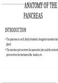 •	The pancreas is a soft, finely lobulated, elongated exoendocrine gland.