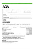 AQA GCSE BUSINESS Paper 1 Influences of operations and HRM on business activity QP and MS May 2025