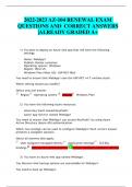 c. I should place my thumb over the suction por... i x Exam (elaborations) • 53 pages • by Profsmith • uploaded 2023 Quick View i x ATI COMP 2013 FORM A & B QUESTIONS AND answers • ATI COMP 2013 FORM A & B QUESTIONS AND answers 2022-2023 AZ-104 RENEWAL EXAM QUESTIONS AND CORRECT ANSWERS |ALREADY GRADED A+ (0) $28.77 0x sold AZ-104 RENEWAL EXAM