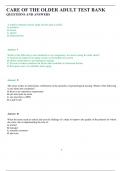 CARE OF THE OLDER ADULT TEST BANK QUESTIONS AND ANSWERS