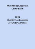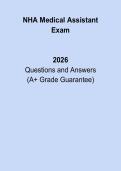 Questionans On this page, you find all documents, package deals, and flashcards offered by seller QuestionAns. 1188 Documents 0 Flashcards 0 Package deal Community 1 Followers 2 Following 1 Reviews received 0 0 1 0 0 2 months ago • ryannep3987 CDCES 2026 Mock Exam – Certified Diabetes Care and Education Specialist Practice Test 1188 items Everything Documents Flashcards Package deal Best sold Newest Rating NHA Medical Assistant Exam 2026 | Complete CMA Study Guide & Practice Questions (0) $9.99 0x sold Prepare effectively for the NHA Medical Assistant Exam with this comprehensive study guide, designed for candidates pursuing CMA certification. This resource includes exam-style practice questions with verified answers, detailed explanations, and coverage of essential topics such as patient care, clinical procedures, medical office administration, pharmacology, and medical law and ethics, making it an indispensable tool for reinforcing knowledge, improving practical skills, and confidently passi... i x Exam (elaborations) • 13 pages • by QuestionAns • uploaded 2026 Quick View i x NHA Medical Assistant • NHA Medical Assistant NHA Medical Assistant Latest Exam 2026 | Complete CMA Practice & Study Guide (0) $9.99 0x sold Prepare thoroughly for the NHA Medical Assistant Exam with this comprehensive study guide, designed for aspiring Certified Medical Assistants. This resource includes exam-style practice questions with verified answers, detailed explanations, and coverage of essential topics such as patient care, clinical procedures, medical office administration, pharmacology, and medical law and ethics, making it an indispensable tool for reinforcing knowledge, improving practical skills, and confidently passin... i x Exam (elaborations) • 17 pages • by QuestionAns • uploaded 2026 Quick View i x NHA Medical Assistant • NHA Medical Assistant NHA Chapter 11 Testing & Lab Procedures 2026 | Medical Assistant Study & Practice Guide (0) $9.99 0x sold Prepare effectively for Chapter 11: Testing & Lab Procedures with this comprehensive NHA study guide, designed for medical assistant students and certification candidates. This resource includes practice questions with verified answers, detailed explanations, and coverage of essential lab topics such as specimen collection, laboratory safety, diagnostic tests, and clinical procedures, making it an essential tool for reinforcing knowledge, improving practical skills, and confidently passing NHA e... i x Exam (elaborations) • 2 pages • by QuestionAns • uploaded 2026 Quick View i x NHA Testing & Lab procedure • NHA Testing & Lab procedure NCSBN NCLEX Exam Questions 2026 | Complete RN Practice & Study Guide (0) $9.99 0x sold Prepare thoroughly for the NCSBN NCLEX Exam with this comprehensive collection of exam-style questions, designed for aspiring registered nurses. This resource includes practice questions with verified answers and detailed explanations covering essential nursing topics such as patient care, pharmacology, medical-surgical nursing, maternal and pediatric care, safety, and clinical decision-making, making it an indispensable tool for reinforcing knowledge, improving test-taking skills, and confident... i x Exam (elaborations) • 60 pages • by QuestionAns • uploaded 2026 Quick View i x NCSBN NCLEX • NCSBN NCLEX NHA CCMA 2026 Mock Exam | Certified Clinical Medical Assistant Practice & Study Guide (0) $9.99 0x sold Boost your readiness for the NHA CCMA 2026 Exam with this comprehensive mock exam, designed for aspiring Certified Clinical Medical Assistants. This resource includes realistic practice questions with verified answers, detailed explanations, and coverage of essential topics such as patient care, clinical procedures, medical office administration, pharmacology, and medical law and ethics, making it an indispensable tool for reinforcing knowledge, improving test-taking skills, and confidently pass... i x Exam (elaborations) • 18 pages • by QuestionAns • uploaded 2026 Quick View i x NHA CCMA • NHA CCMA NHA CCMA Exam 2026 | Complete Certified Clinical Medical Assistant Study Guide & Practice (0) $9.99 0x sold Prepare confidently for the NHA CCMA Exam 2026 with this comprehensive study guide, designed for aspiring Certified Clinical Medical Assistants. This resource includes exam-style practice questions with verified answers, detailed explanations, and coverage of essential topics such as patient care, clinical procedures, medical office administration, pharmacology, and medical law and ethics, making it an indispensable tool for reinforcing knowledge, improving practical skills, and successfully pas... i x Exam (elaborations) • 18 pages • by QuestionAns • uploaded 2026 Quick View i x NHA CCMA • NHA CCMA NHA CCMA Exam Study Guide 2026 | Complete Certified Clinical Medical Assistant Practice & Review (0) $9.99 0x sold Prepare thoroughly for the NHA CCMA Exam with this comprehensive study guide designed for aspiring Certified Clinical Medical Assistants. This resource includes exam-style practice questions with verified answers, detailed explanations, and coverage of essential topics such as patient care, clinical procedures, medical office administration, pharmacology, and medical law and ethics, making it an indispensable tool for reinforcing knowledge, improving practical skills, and confidently passing the... i x Exam (elaborations) • 49 pages • by QuestionAns • uploaded 2026 Quick View i x NHA CCMA • NHA CCMA NHA Baseline Mock Test 2026 | Complete Certification Exam Practice & Study Guide (0) $9.99 0x sold Prepare effectively for the NHA Baseline Exam with this comprehensive mock test, designed for candidates seeking National Healthcareer Association certification. This resource includes exam-style practice questions with verified answers, detailed explanations, and coverage of essential topics such as patient care, medical terminology, clinical procedures, infection contro