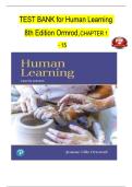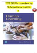TEST BANK for Human Learning, 8th Edition by Ormrod, Verified Chapters 1 - 15, Complete Newest Version