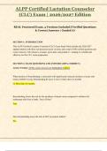 - ALPP Certified Lactation Counselor (CLC) Exam Study guide | Latest 2026/2027 Edition REAL Proctored Exam (Verified Questions & Correct Answers | Graded A) • Exam (elaborations)