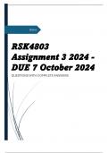 QUESTIONS WITH ANSWERS RSK4803 Assignment 3 2024 - DUE 7 October 2024