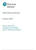 Pearson Edexcel GCE In Religious Studies (9RSO) Paper 1: Philosophy of Religion mark scheme June 2025 9rs0-01