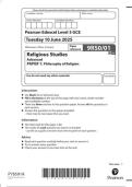 Pearson Edexcel Level 3 GCE Religious Studies Advanced PAPER 1: Philosophy of Religion 9RS0/01 question paper June 2025