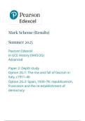 Pearson Edexcel In GCE History (9HI0/2G) Advanced Paper 2: Depth study Option 2G.1: The rise and fall of fascism in Italy, c1911-46 Option 2G.2: Spain, 1930-78: republicanism, Francoism and the re-establishment of democracy mark scheme June 2025