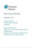 Pearson Edexcel In GCE History (9HI0/2F) Advanced Paper 2: Depth study Option 2F.1: India, c1914-48: the road to independence Option 2F.2: South Africa, 1948-94: from apartheid state to 'rainbow nation' mark scheme June 2025