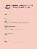Texas Real Estate State Exam review with correct answers guaranteed success.