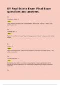 KY Real Estate Exam Final Exam questions and answers. Qs Graduated Lease - n ANS Lease amount increases over certain amount of time. EX: $450 for 5 years; $500 next 5 years etc. Qs General Lein - n ANS Right of a creditor to have all of a debtor