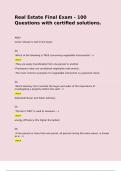 Real Estate Final Exam - 100 Questions with certified solutions.