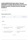 IAHSS SUPERVISOR FINAL EXAM /Newest 2025/2026 Complete 150 Questions And Correct Detailed Answers (Verified Answers) |Already Graded A+