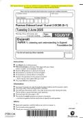 2025 Pearson Edexcel Level 1/Level 2 GCSE (9–1) Gujarati PAPER 1: Listening and understanding in Gujarati Higher tier Exam Paper and marking scheme