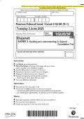 2025 Pearson Edexcel Level 1/Level 2 GCSE (9–1) Gujarati PAPER 3: Reading and understanding in Gujarati Higher Tier Exam Paper and marking scheme