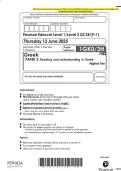 2025 Pearson Edexcel Level 1/Level 2 GCSE (9–1) Greek PAPER 3: Reading and understanding in Greek Higher Tier Exam Paper and marking scheme