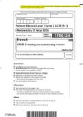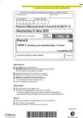 2025 Pearson Edexcel Level 1/Level 2 GCSE (9–1) French PAPER 3: Reading and understanding in French Higher Tier Exam Paper and marking scheme