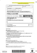 2025 Pearson Edexcel Level 1/Level 2 GCSE (9–1) Geography PAPER 1: The Physical Environment Exam Paper and marking scheme