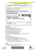 2025 Pearson Edexcel Level 1/Level 2 GCSE (9–1) English Language Paper 1: fiction and imaginative