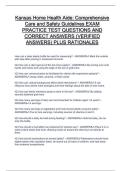 Kansas Home Health Aide: Comprehensive Care and Safety Guidelines EXAM PRACTICE TEST QUESTIONS AND CORRECT ANSWERS (VERIFIED ANSWERS) PLUS RATIONALES